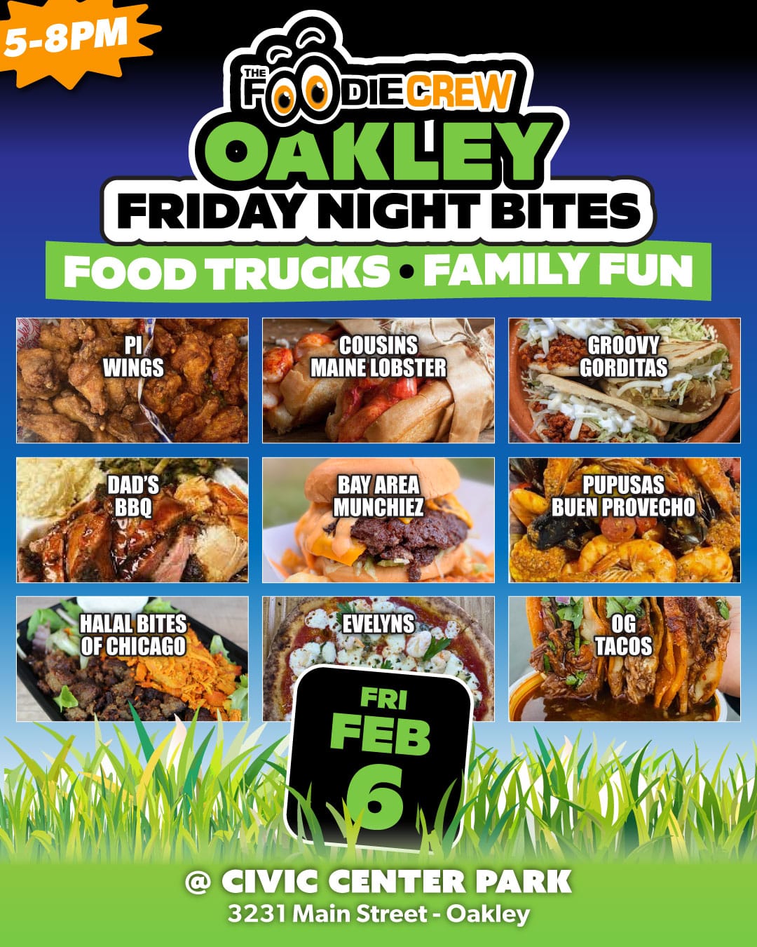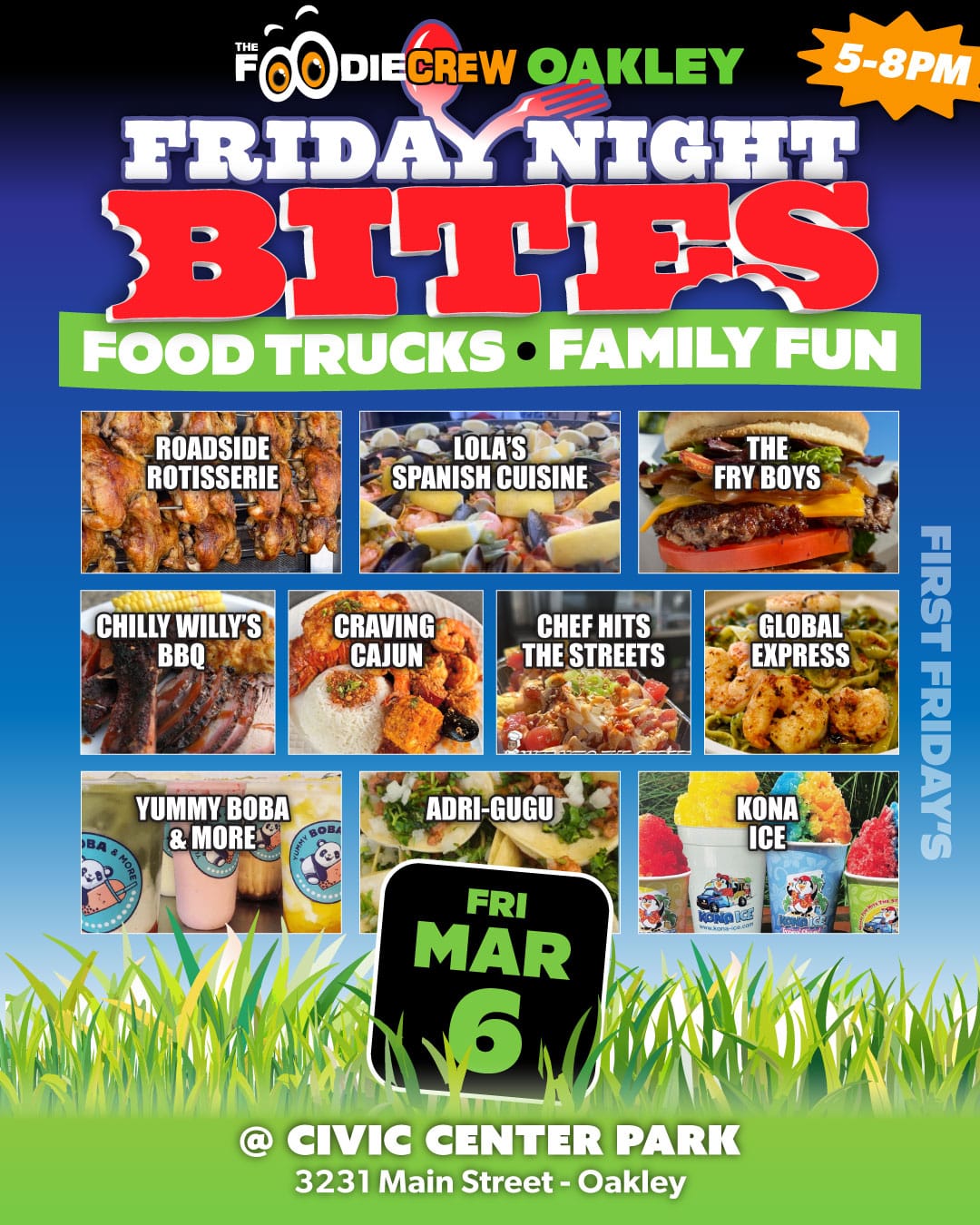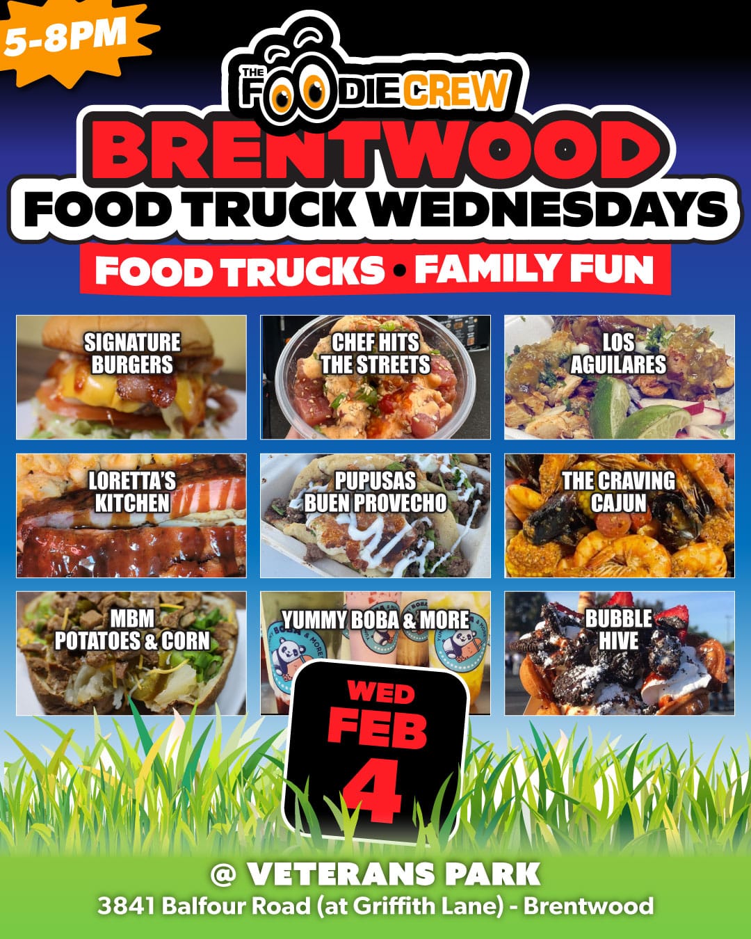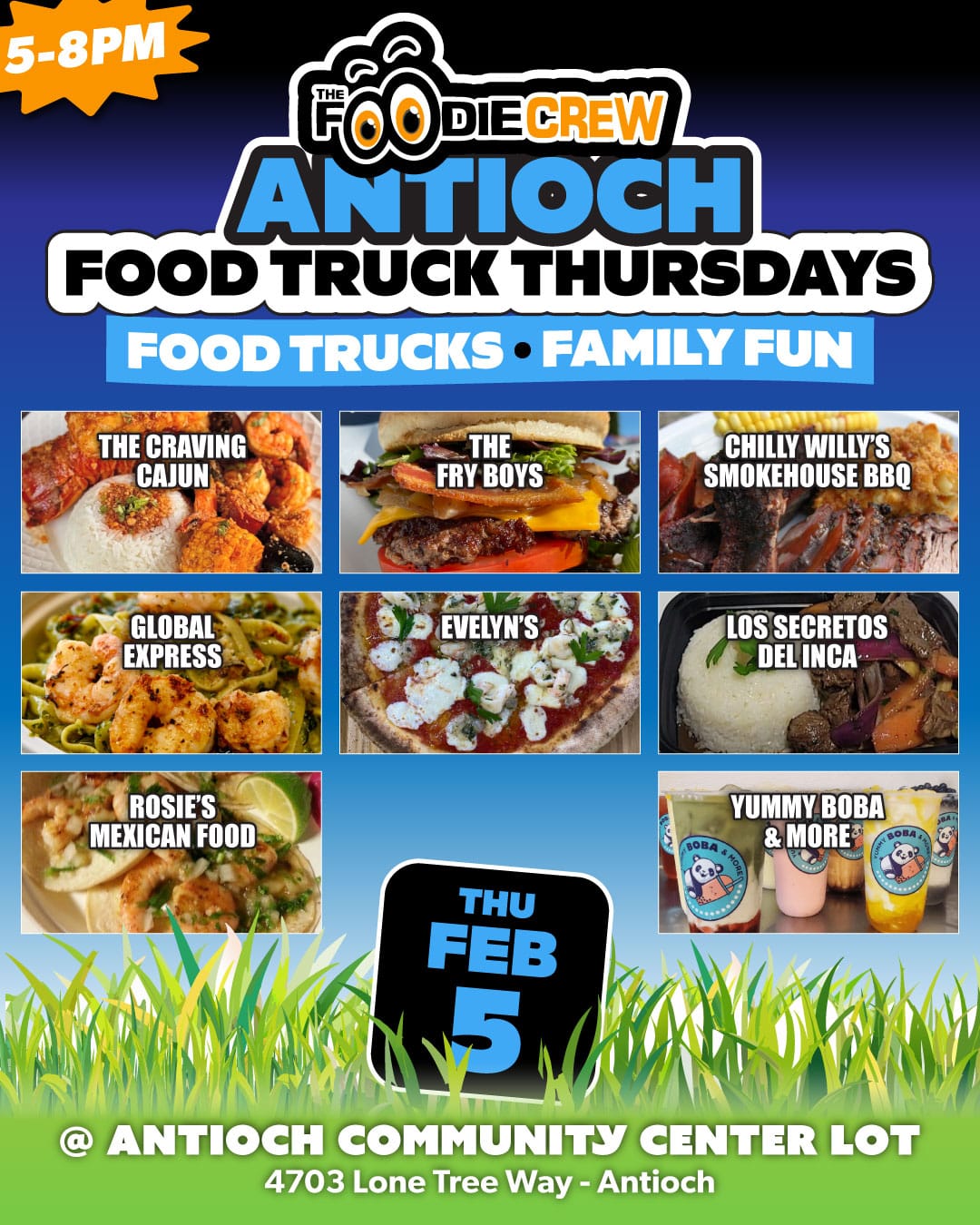 Founded in the spring of 2017, The Foodie Crew is a Contra Costa County-based food truck event and catering company specializing in creating lively and enjoyable foodie experiences. Beyond our community-based food truck markets and festivals that blend delectable cuisine with vibrant atmospheres, music, and family-friendly games, we extend our event planning and catering services to the entire San Francisco Bay Area and beyond for private, special, and corporate functions. Presently, we host free-to-attend weekly community food truck markets in Brentwood, CA (Food Truck Wednesdays), Antioch, CA (Food Truck Thursdays), and our highly popular first Friday event in Oakley, California (Friday Night Bites).