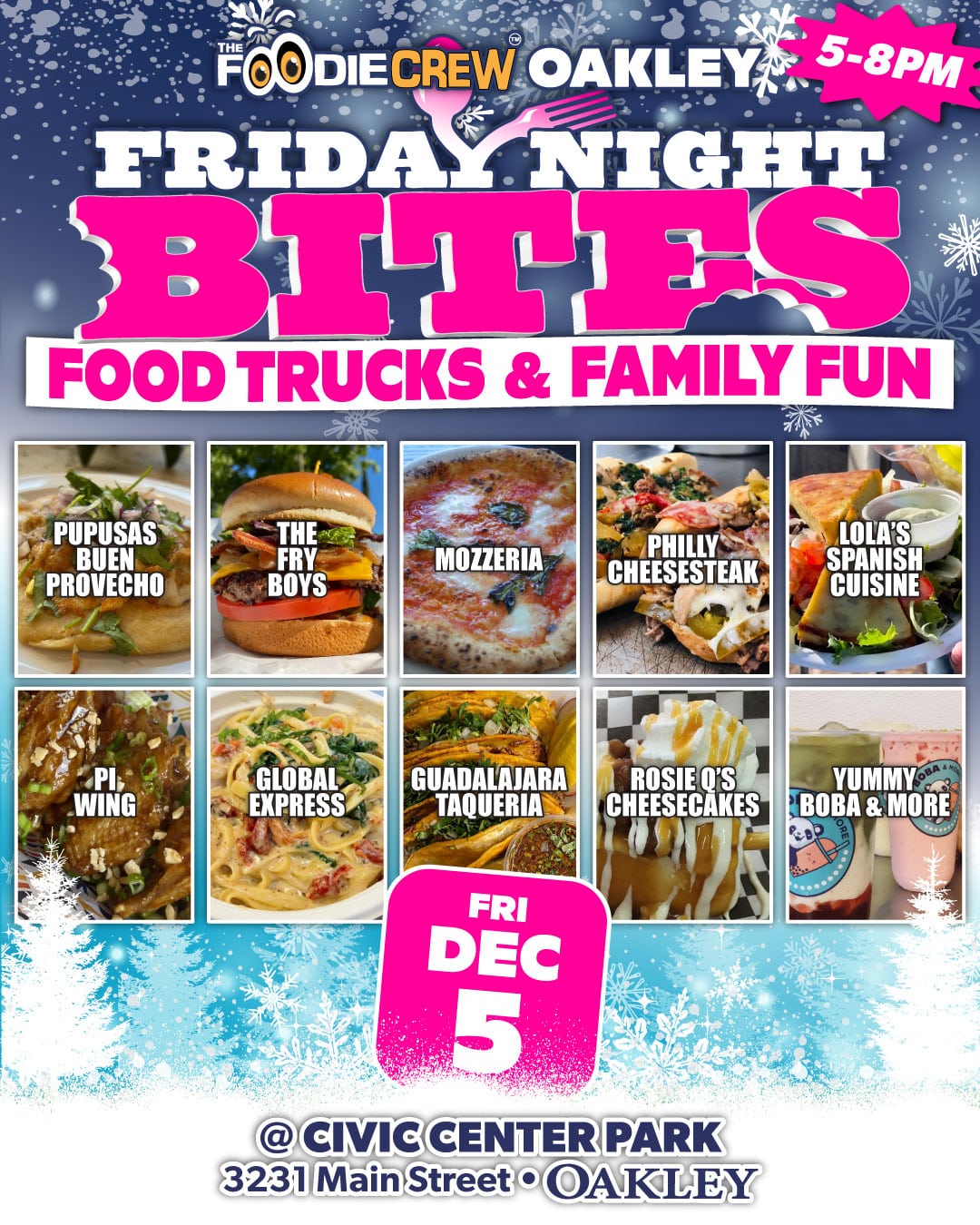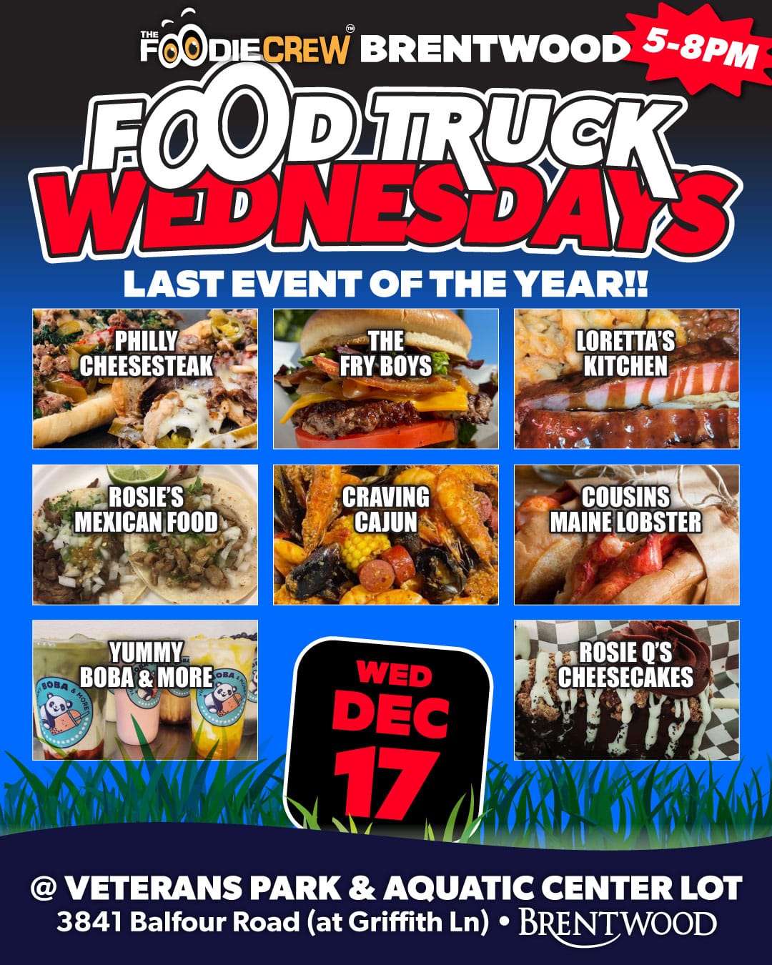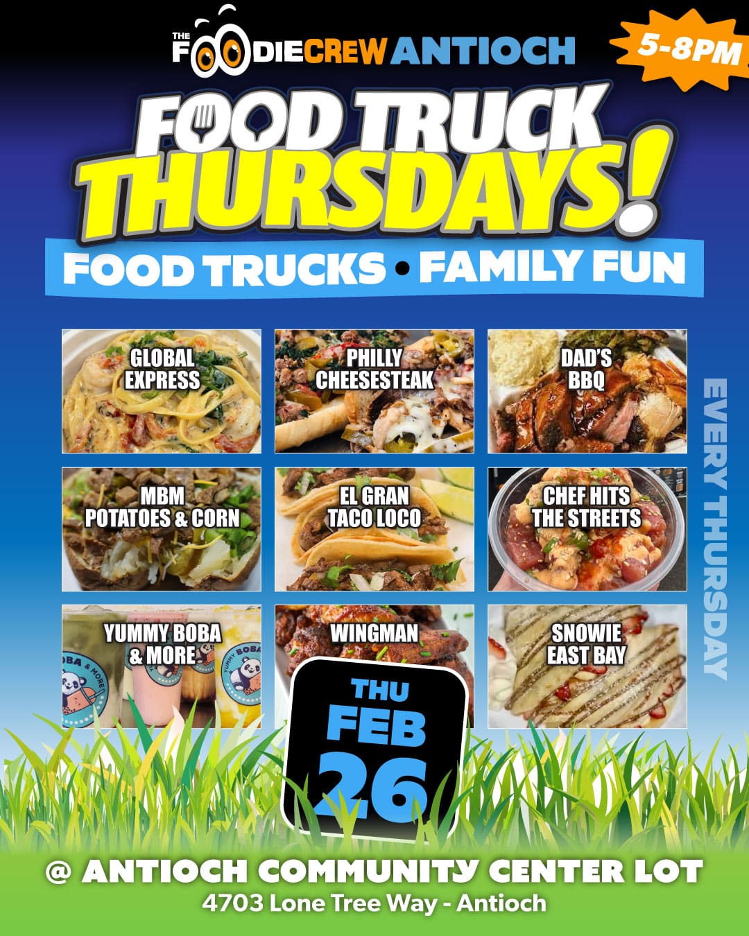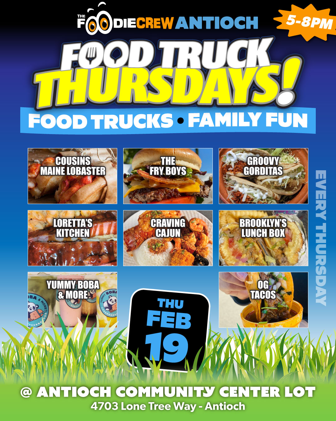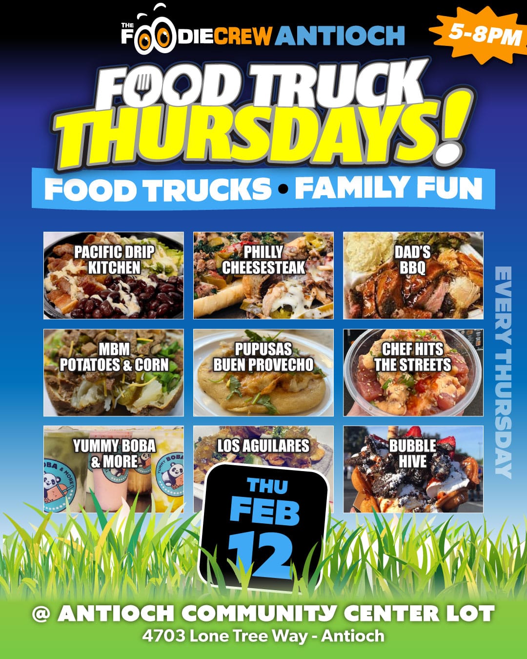Founded in the spring of 2017, The Foodie Crew is a Contra Costa County-based food truck event and catering company specializing in creating lively and enjoyable foodie experiences. Beyond our community-based food truck markets and festivals that blend delectable cuisine with vibrant atmospheres, music, and family-friendly games, we extend our event planning and catering services to the entire San Francisco Bay Area and beyond for private, special, and corporate functions. Presently, we host free-to-attend weekly community food truck markets in Brentwood, CA (Food Truck Wednesdays), Antioch, CA (Food Truck Thursdays), and our highly popular first Friday event in Oakley, California (Friday Night Bites).